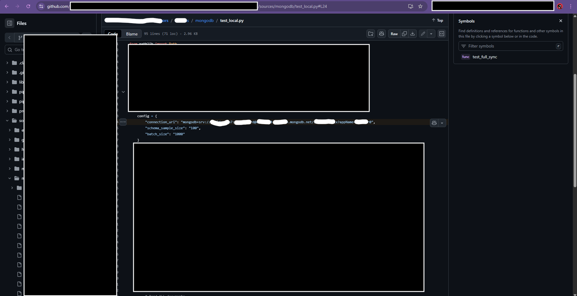 I was doing my regular GitHub reconnaissance when I found a Python test file with hardcoded MongoDB credentials. The file was called test_local.py And the credentials were sitting right there on line 24.